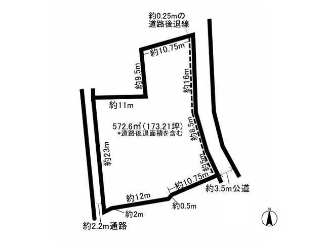 | 土地面積 | 572.6m²(173.21坪)※道路後退面積を含む |